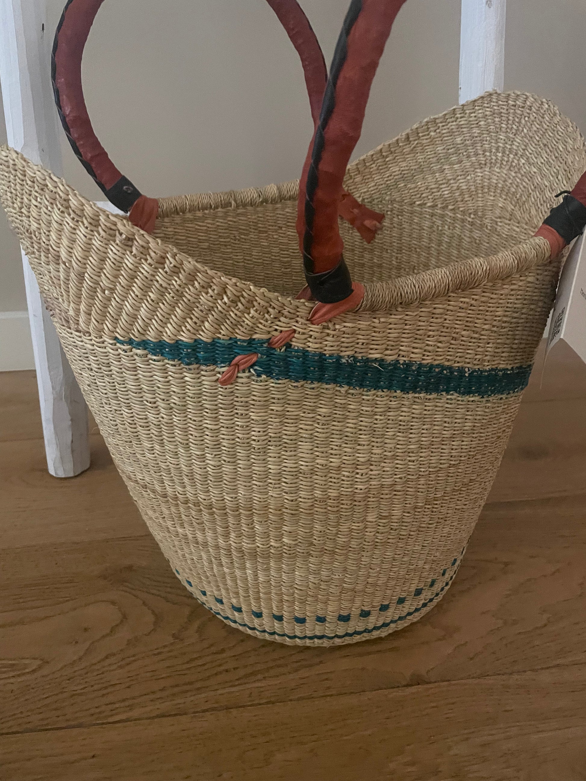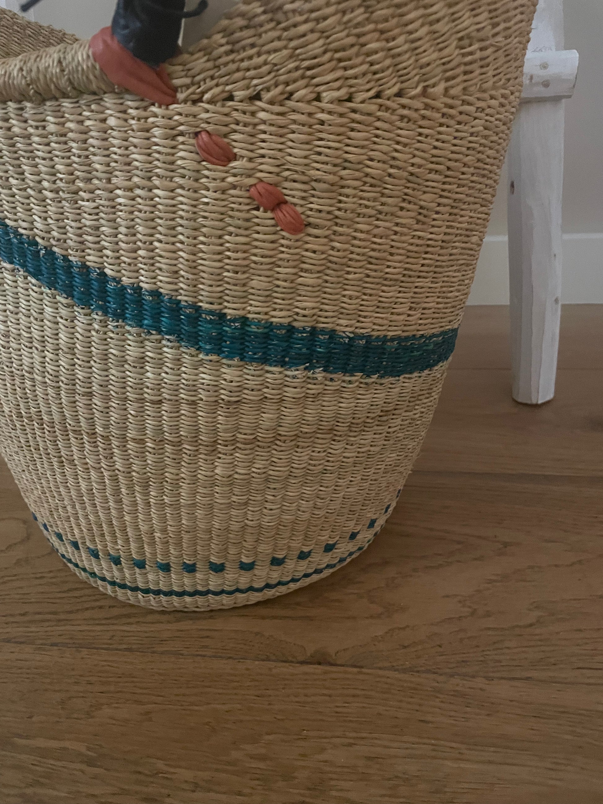 Deze mand is een traditioneel en handgemaakt product uit Bolgatanga in Ghana en wordt onder goede omstandigheden gemaakt. Er wordt door ons niet onderhandelt over de prijs, zo krijgen de 'weavers' een eerlijke prijs voor hun prachtige producten.